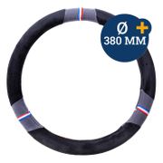 Eigenschaften: samtweich mit Ziernähten für Lenkräder mit einem Ø von 380 mm rutschfest und griffig strapazierfähig einfache Befestigung Farbe: schwarz mit grauen Einsätzen Material: Samt Maße: Ø 380 ...