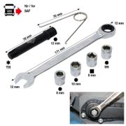 Universal-Adaptersatz zum Zurückdrehen von Bremskolben. Die Abstände der Drehstifte sind mittels einfacher aber robuster Mechanik stufenlos einstellbar.Eigenschaften:Jeweils ein Universaladapter für B...